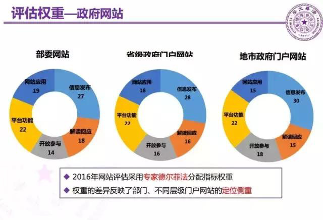 《2016年中国政府网站绩效评估报告》从信息发布、解读回应、开放参与、平台支撑、网站应用等五个维度对国家部委、省级、地市级政府门户网站的建设管理水平分别进行评估。